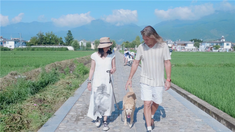 林登和妻子走在云南大理喜洲鎮(zhèn)稻田間。受訪(fǎng)者供圖