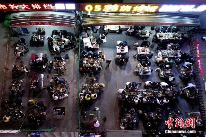 各地食客在淄博品嘗燒烤。梁犇 攝