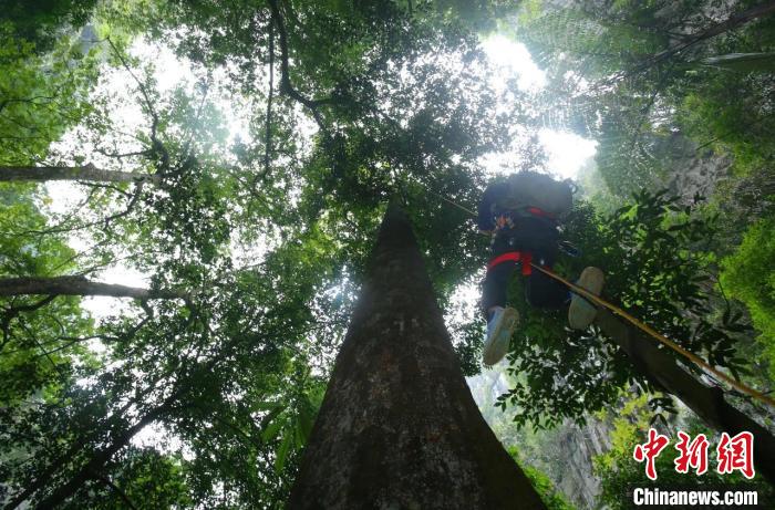 科考人員攀樹測(cè)量?!V西林業(yè)局供圖