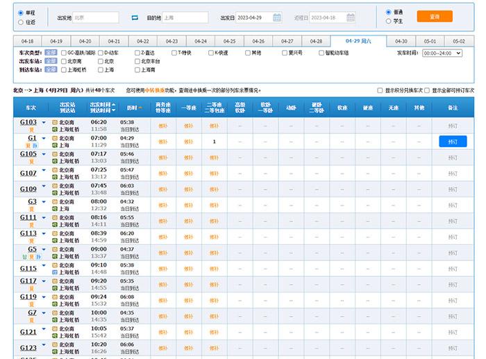 中新財經(jīng)18日登錄12306官網(wǎng)查詢發(fā)現(xiàn),4月29日北京-上海車票已幾乎全部售罄。