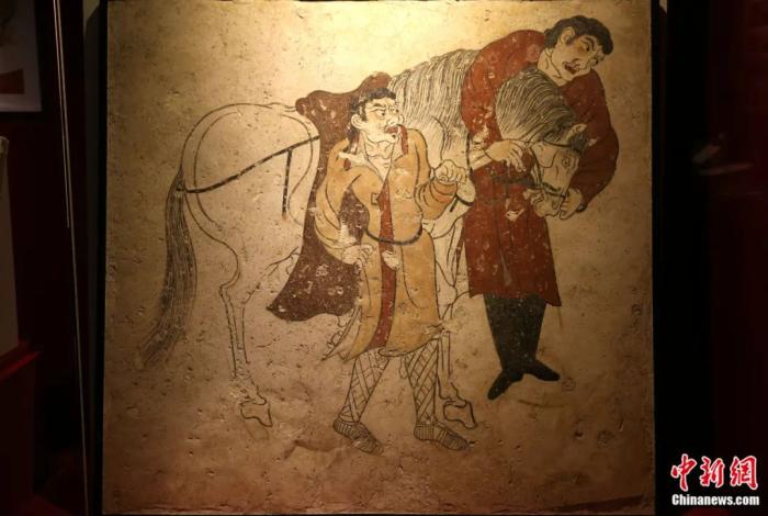 陜西歷史博物館展出的胡人牽馬圖壁畫(huà)。張遠(yuǎn) 攝