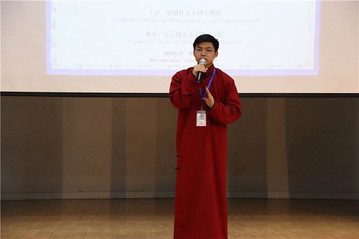 人民網(wǎng)烏蘭巴托5月7日電 (記者霍文)6日下午,蒙古國第二屆中學生“漢語故事會”決賽在蒙古國立大學2號樓禮堂舉辦。本次大賽由中國駐蒙古國大使館主辦,蒙古國立大學孔子學院承辦,初賽以提交視頻的方式進行,來自9所學校的37位選手晉級決賽。