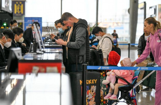 4月25日,南航工作人員在為旅客辦理值機手續(xù)。4月25日,一架中國南方航空CZ6015航班從烏魯木齊地窩堡國際機場起飛,前往土庫曼斯坦首都阿什哈巴德。南航新疆分公司介紹,這是目前國內(nèi)恢復的首條飛往土庫曼斯坦的國際航線。該航線恢復后,標志著我國新疆與中亞五國航線全面恢復。(新華社記者 王菲 攝)