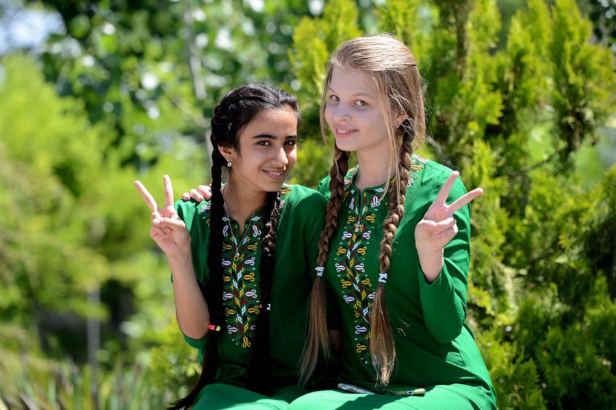 ↑人們在烏茲別克斯坦首都塔什干慶祝納烏魯斯節(jié)。