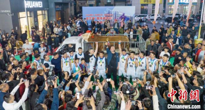 “村BA”現(xiàn)場,冠軍隊伍獲得一頭黃?!≈T暨市融媒體中心 供圖