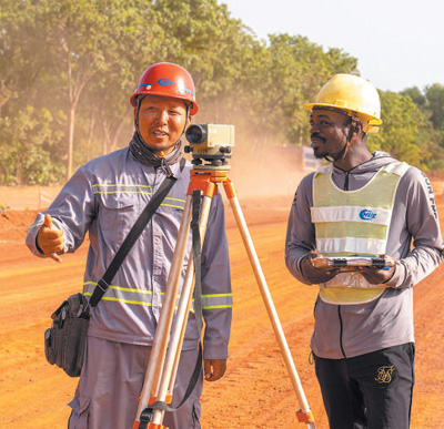 4月13日,中國(guó)和科特迪瓦工作人員在科北部公路項(xiàng)目施工現(xiàn)場(chǎng)一起工作。