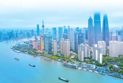 上海浦東,船舶在黃浦江上往來(lái)穿梭。