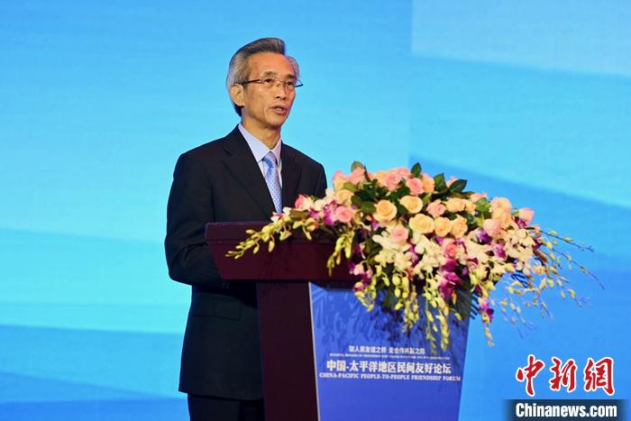 圖為5月12日,林松添在福州舉辦的中國(guó)-太平洋地區(qū)民間友好論壇上致辭。 中新社記者 王東明 攝
