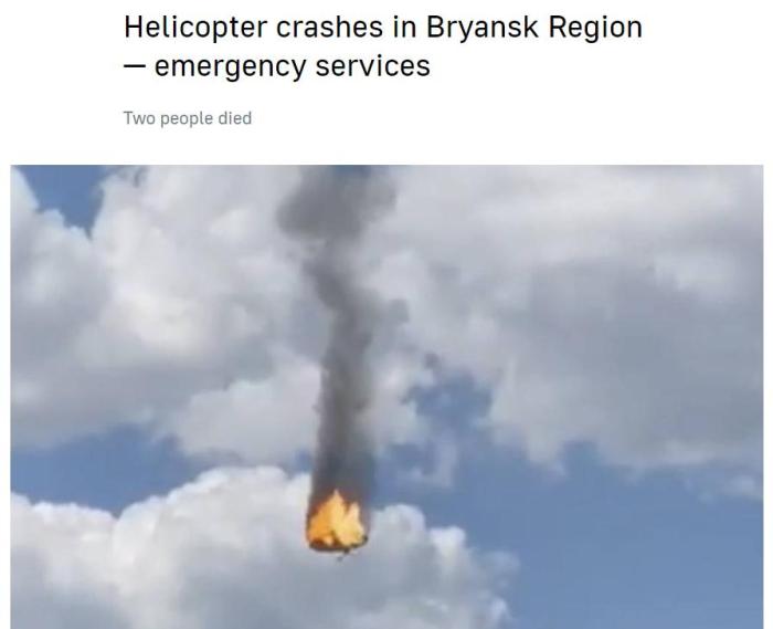 據(jù)報道,消息人士稱,“根據(jù)初步數(shù)據(jù),一架直升機在克林茨市墜毀,原因是發(fā)動機起火?!?/p>