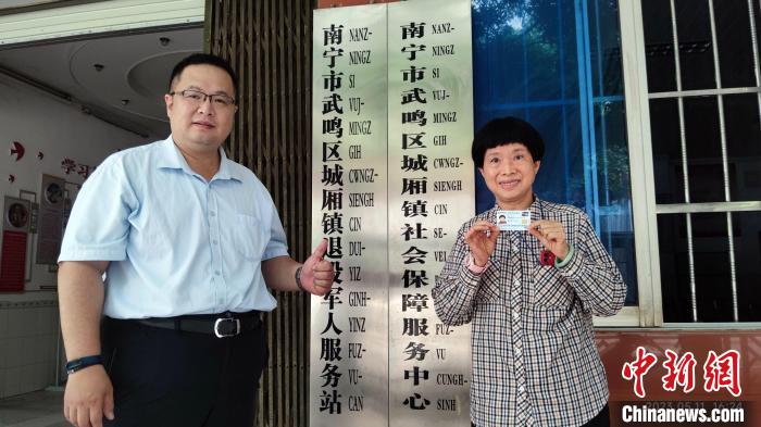 梁洲輔5月11日順利幫助母親辦理了武鳴區(qū)城鄉(xiāng)居民基本養(yǎng)老保險(xiǎn)和醫(yī)療保險(xiǎn),并成為廣西首例辦理了臺灣居民居住證但沒有在當(dāng)?shù)鼐蜆I(yè),亦可成功辦理城鄉(xiāng)居民基本養(yǎng)老保險(xiǎn)的臺胞。梁洲輔為母親按每年6000元(人民幣,下同)進(jìn)行繳費(fèi),一次性補(bǔ)繳了15年共9萬元的養(yǎng)老金。今年6月起,張?jiān)孪济吭卤憧深I(lǐng)到800多元的養(yǎng)老金。當(dāng)天,張?jiān)孪家渤晒k理了城鄉(xiāng)居民基本醫(yī)療保險(xiǎn)。