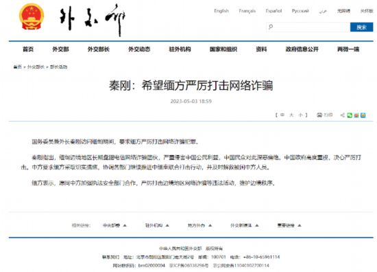 此前,國務委員兼外交部長秦剛訪問緬甸期間,就鄭重地向緬方提到了網絡詐騙:“緬甸邊境地區(qū)長期盤踞電信網絡詐騙團伙,嚴重侵害中國公民利益,中國民眾對此深惡痛絕。中國政府高度重視,決心嚴厲打擊?!?/p>