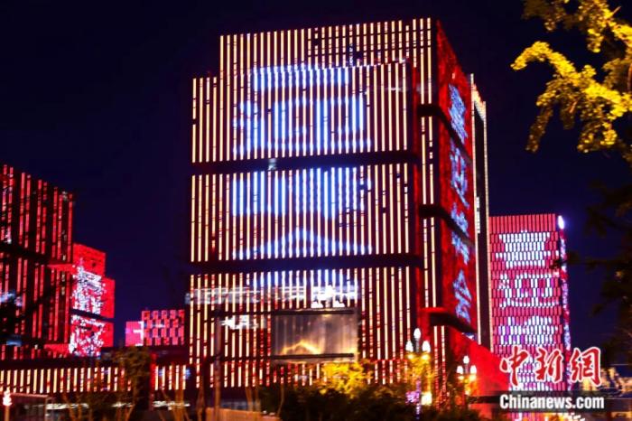 5月15日,陜西西安一處樓群亮起“喜迎峰會(huì)”燈光。5月18日至19日,中國—中亞峰會(huì)將在陜西西安舉行。張遠(yuǎn) 攝