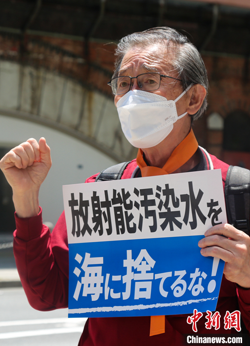5月16日,日本民眾在東京電力公司總部前舉行集會(huì),表達(dá)對日本政府和東京電力公司持續(xù)強(qiáng)推福島核污染水排海計(jì)劃的強(qiáng)烈反對。 中新社發(fā) 蔣文月 攝