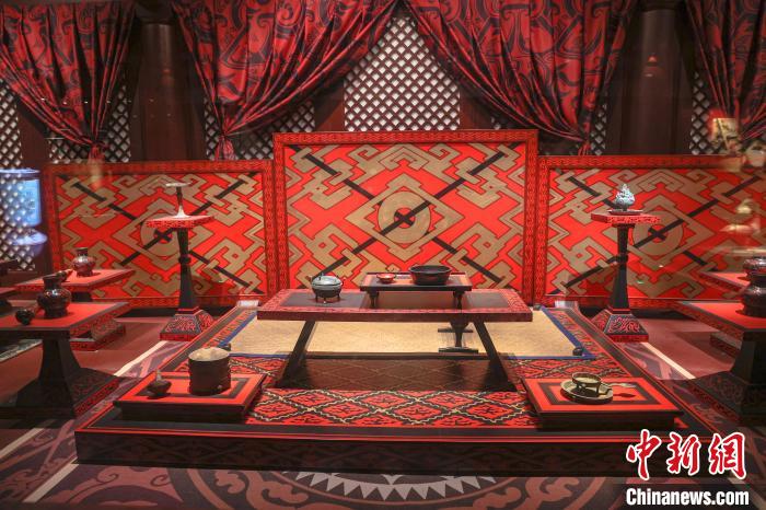 南昌漢代海昏侯國考古遺址公園內(nèi)的“禮樂宴饗”展區(qū)?!≈行律缬浾?劉力鑫 攝