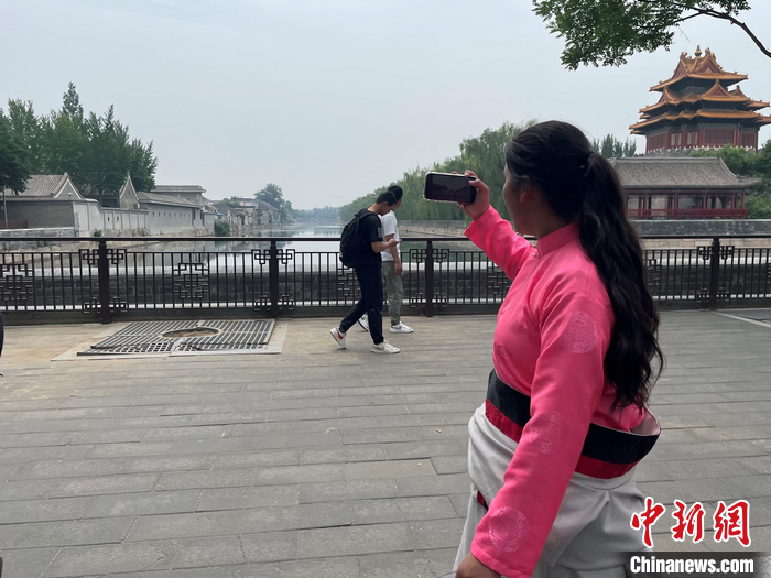 鬧增拉毛第一次通過手機(jī)鏡頭拍攝故宮外圍的場景。袁秀月 攝