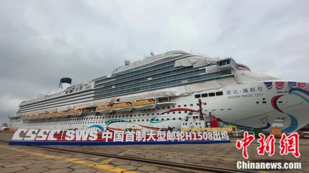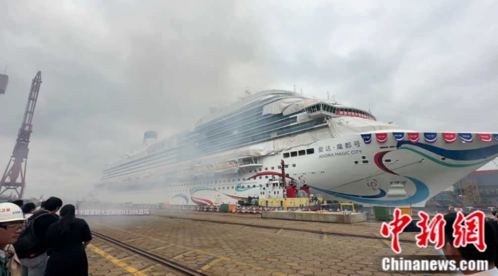 看,這艘身系“敦煌飛天彩帶”楚楚動人的我國首艘國產(chǎn)大型郵輪“愛達(dá)·魔都”號,今日盛裝出塢!