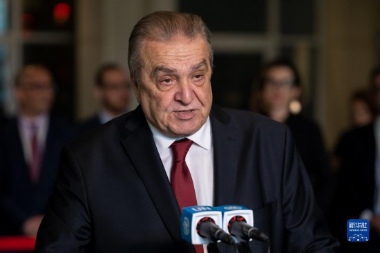 6月6日,在位于紐約的聯(lián)合國總部,阿爾及利亞常駐聯(lián)合國代表阿馬爾·本賈瑪在阿爾及利亞當選聯(lián)合國安理會非常任理事國后在記者見面會上講話。新華社發(fā)(聯(lián)合國供圖/洛伊·費利佩攝)