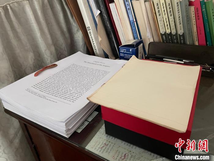 金曉宇家中擺放的近期翻譯作品。 張煜歡 攝