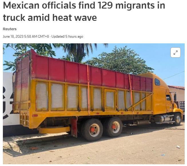 據(jù)報道,移民當局表示,他們在一輛卡車內發(fā)現(xiàn)了這些移民,事發(fā)地近日正遭受熱浪侵襲,當天的室外溫度已達到45攝氏度。