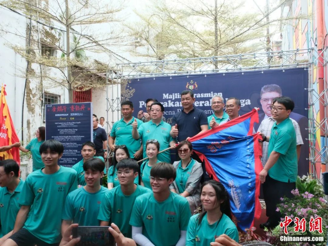 龍舟文化受到馬六甲政府支持。圖為2023年游龍舟活動6月18日開幕,州行政議員代表州首席部長出席并為參與龍舟隊授旗。陳悅 攝
