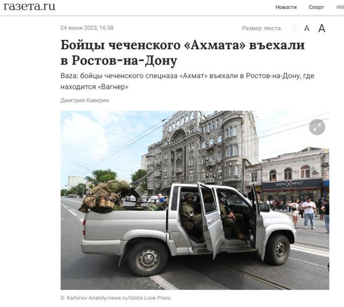 中新網(wǎng)6月24日電 據(jù)俄羅斯《報紙報》援引社交媒體消息,當(dāng)?shù)貢r間24日,俄羅斯車臣“阿赫馬特”特種部隊已進(jìn)入頓河畔羅斯托夫地區(qū)。當(dāng)日早間,俄雇傭兵組織“瓦格納”集團(tuán)進(jìn)入該地。