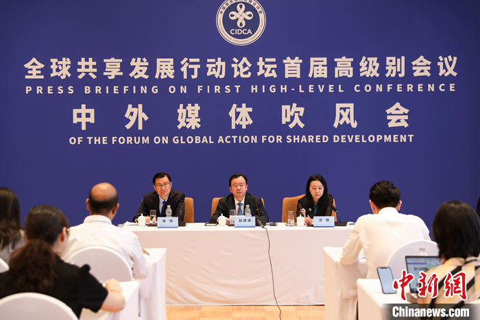 7月4日,全球共享發(fā)展行動論壇首屆高級別會議中外媒體吹風(fēng)會在北京舉行。針對有觀點認(rèn)為西方國家與發(fā)展中國家看待全球發(fā)展倡議的視角不同,對全球發(fā)展倡議的評價也不同,中國國家國際發(fā)展合作署副署長趙峰濤(中)在北京回應(yīng)指出,全球發(fā)展倡議面向全球,無分南北。倡議是開放、包容的,不能用狹隘的地緣政治、冷戰(zhàn)思維、陣營對抗理念來解讀。 中新社記者 趙雋 攝