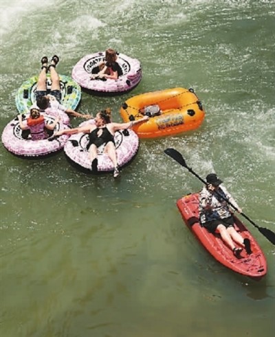 美國南部多地近日接連刷新高溫紀(jì)錄。圖為近日,在美國得克薩斯州新布朗費(fèi)爾斯,人們在河中消暑。