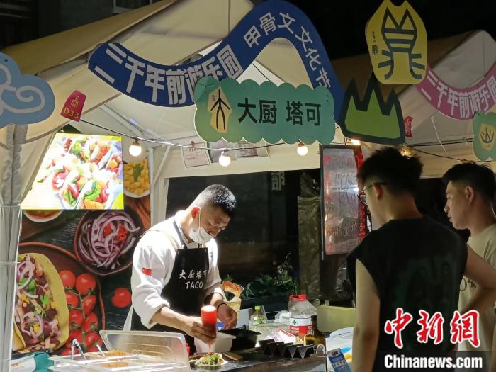 中新財(cái)經(jīng)了解到,該夜市舉辦時(shí)間為6月9日-7月9日,每天下午4點(diǎn)-晚上10點(diǎn),為沉浸式甲骨文主題夜市。盡管打著甲骨文藝術(shù)節(jié)的旗號(hào),但在涵蓋小吃、飲品、手工飾品、互動(dòng)游戲等各色賣點(diǎn)夜市上,游客們依然用行動(dòng)投票出了他們最感興趣的環(huán)節(jié)——排起長(zhǎng)隊(duì)的,無(wú)一不是特色小吃。