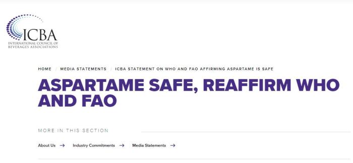 同一天,國際飲料協(xié)會委員會(ICBA)發(fā)布文章稱,目前含阿斯巴甜的食品和飲料是安全的。ICBA還強調(diào),IARC不是食品安全機構(gòu),它現(xiàn)在正式承認,阿斯巴甜造成的危害并不比蘆薈和其他數(shù)百種物質(zhì)的危害大,這些物質(zhì)根據(jù)IARC描述都屬于證據(jù)“有限”和“不完全充分”的分類。