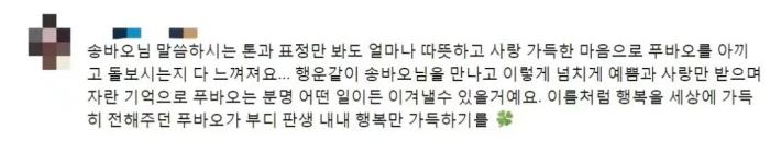 有網(wǎng)友說(shuō):光看宋爺爺說(shuō)話的語(yǔ)調(diào)和表情,就能感覺(jué)到他是用多么溫暖和充滿愛的心來(lái)珍惜和照顧“福寶”。在這樣充滿關(guān)愛的環(huán)境中長(zhǎng)大的“福寶”,無(wú)論什么事情都一定能戰(zhàn)勝。希望像名字一樣,將幸福傳遞給全世界的“福寶”,永遠(yuǎn)都能幸福。