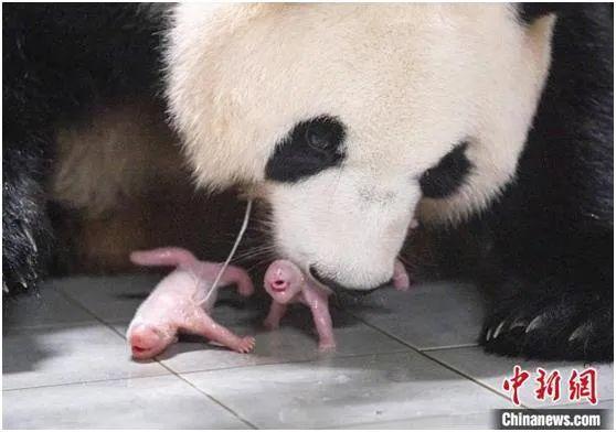 當(dāng)?shù)貢r(shí)間2023年7月7日,大熊貓“愛寶”在韓國(guó)三星愛寶樂(lè)園產(chǎn)下雙胞胎幼崽。圖為“愛寶”與幼崽。 (韓國(guó)三星愛寶樂(lè)園供圖)