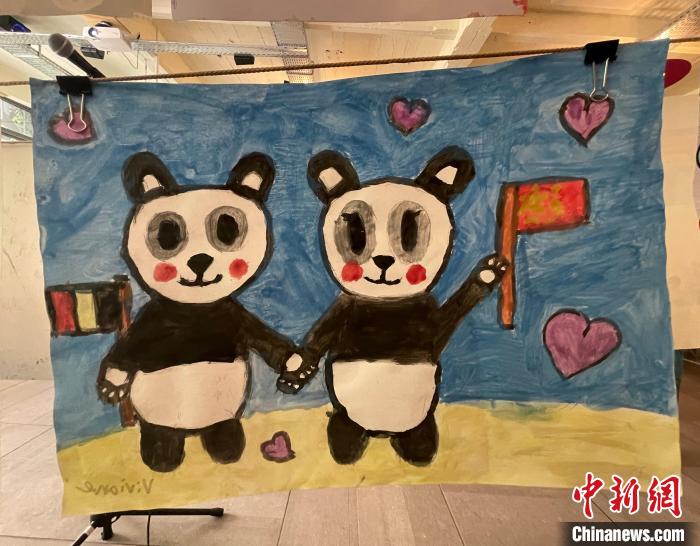 從北京天安門到比利時(shí)地標(biāo)建筑原子球塔,從中國大熊貓到梵高畫像,孩子們的筆觸雖稚嫩,卻處處傳遞中西方文化的交融交匯。
