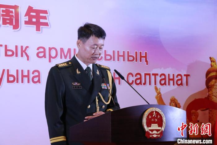 當?shù)貢r間7月28日晚,哈薩克斯坦阿斯塔納,中國駐哈薩克斯坦大使館舉行慶祝中國人民解放軍建軍96周年招待會。圖為國防武官胡德君大校在致辭中?! ≈行戮W(wǎng)記者 張碩 攝