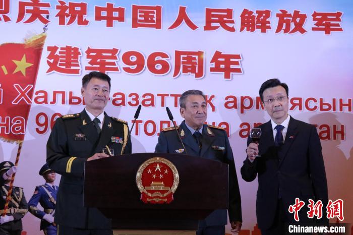 當?shù)貢r間7月28日晚,哈薩克斯坦阿斯塔納,中國駐哈薩克斯坦大使館舉行慶祝中國人民解放軍建軍96周年招待會?! ≈行戮W(wǎng)記者 張碩 攝