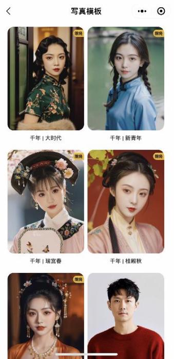 妙鴨相機提供的寫真模板。 截圖自妙鴨相機小程序。