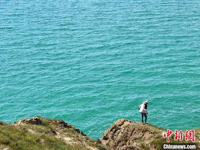 8月1日,記者拍攝到湛藍(lán)的鄂陵湖宛如藍(lán)寶石鑲嵌在群山之中,煙波浩渺、波瀾壯闊。