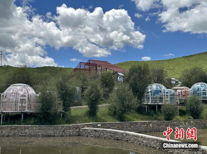 在園區(qū)內(nèi),除了大面積的草場(chǎng),還能看見一些臨水而建、顏色各異的圓形房間。王春貴介紹稱,那是供游客休閑的星空房。目前,紅原牦?,F(xiàn)代農(nóng)業(yè)園區(qū)正朝著牧旅融合的道路發(fā)展,咖啡屋、星空房等休閑設(shè)施以及牧旅融合體驗(yàn)區(qū)已初步建設(shè)完成。“全部建成以后,游客還能在園區(qū)內(nèi)體驗(yàn)牦牛喂養(yǎng)?!蓖醮嘿F說(shuō)。