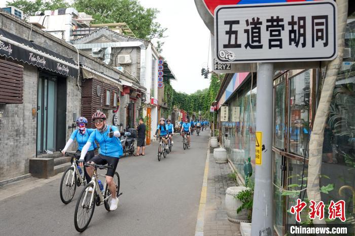 8月8日,臺(tái)胞青年在五道營(yíng)胡同騎行。(主辦方供圖)
