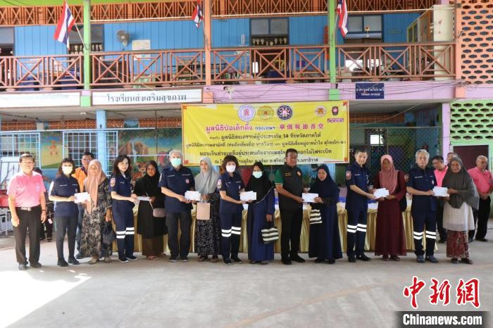8月9日,華僑報(bào)德善堂和泰南十四府聯(lián)合救災(zāi)機(jī)構(gòu)慰問(wèn)救濟(jì)陶公府爆炸案受害者。中新社發(fā) 受訪者供圖