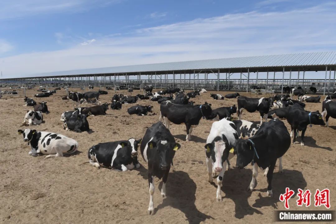 圖為烏蘭布和沙漠中的奶牛。胡東育 攝