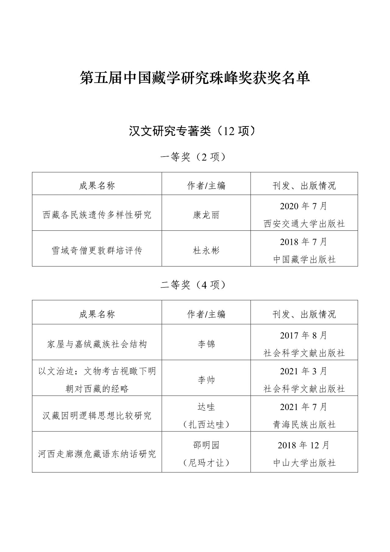 【關(guān)注】第五屆中國(guó)藏學(xué)研究珠峰獎(jiǎng)獲獎(jiǎng)名單