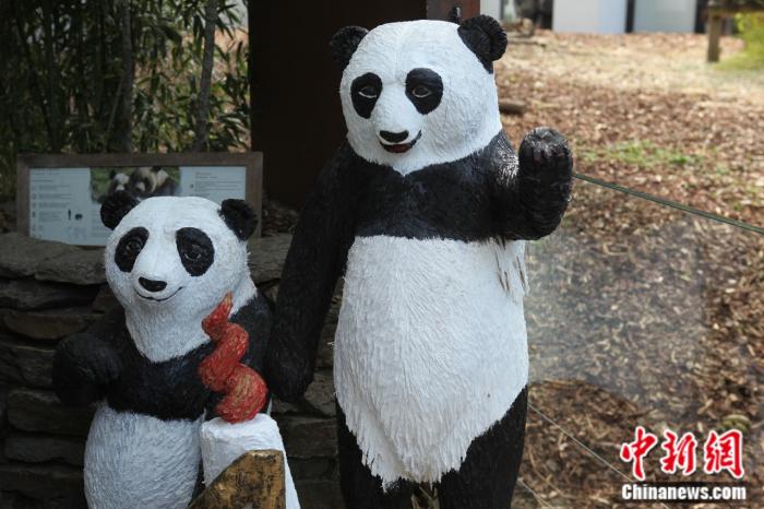 天堂動物園新落成的熊貓雕像。中新網(wǎng)記者 德永健 攝