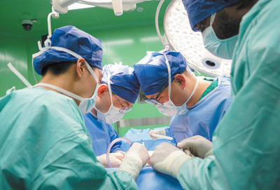 8月10日,醫(yī)生在中國海軍“和平方舟”號醫(yī)院船上,為瓦努阿圖患者進(jìn)行手術(shù)。