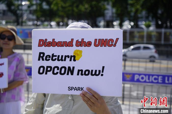 21日上午,韓國民間團體“和平統(tǒng)一開創(chuàng)者”在韓國總統(tǒng)府前的空地集會。有市民手舉“中斷韓美軍事演習(xí)”“立即收回戰(zhàn)時作戰(zhàn)指揮權(quán)”“反對北約成員國軍事介入朝鮮半島”等標(biāo)語,呼吁韓美兩國停止軍演,要求廢除美國對韓國提供的“延伸威懾”。