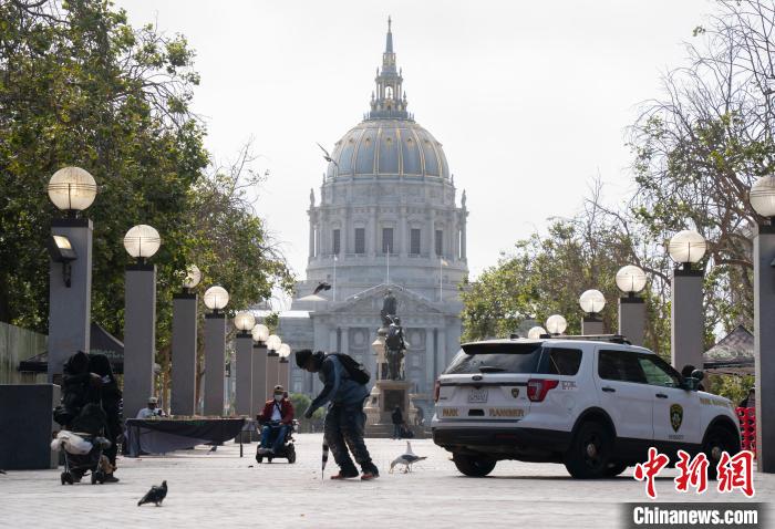 當?shù)貢r間8月19日,無家可歸者從美國舊金山市政廳附近經(jīng)過。中新社記者 劉關(guān)關(guān) 攝