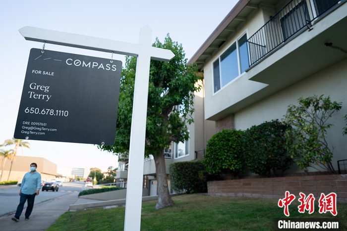 當(dāng)?shù)貢r(shí)間8月22日,美國加州圣馬特奧縣一處公寓前掛出售房廣告。中新社記者 劉關(guān)關(guān) 攝