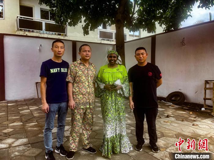 服務于山西援非醫(yī)療隊的廚師劉長東(左二)受邀為當?shù)刭e客提供有中國特色的餐點。山西援非醫(yī)療隊供圖