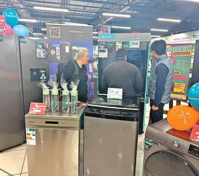 南非員工對(duì)準(zhǔn)備投入當(dāng)?shù)亻T(mén)店的海信家電樣機(jī)進(jìn)行調(diào)試。