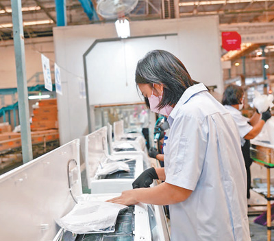 泰國(guó)員工在海爾空調(diào)生產(chǎn)線(xiàn)進(jìn)行操作。
