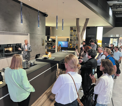 在2022年柏林國(guó)際消費(fèi)電子展期間,參觀者在卡薩帝展臺(tái)前了解智能廚房設(shè)備。